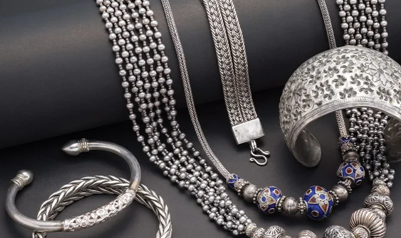 Silver jewelry comes in a variety of forms: Rings: Classic, engraved, gemstone-accented, or statement pieces. Bracelets: Silver bracelets for women include bangles, chains, charm bracelets, and cuffs. Necklaces & Pendants: Simple chains, personalized charms, or statement pendants. Earrings: Studs, hoops, or dangling designs for all occasions. Each piece can reflect your personal style.