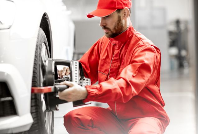 Professional technicians use advanced equipment to measure wheel angles precisely. During the inspection, they check: