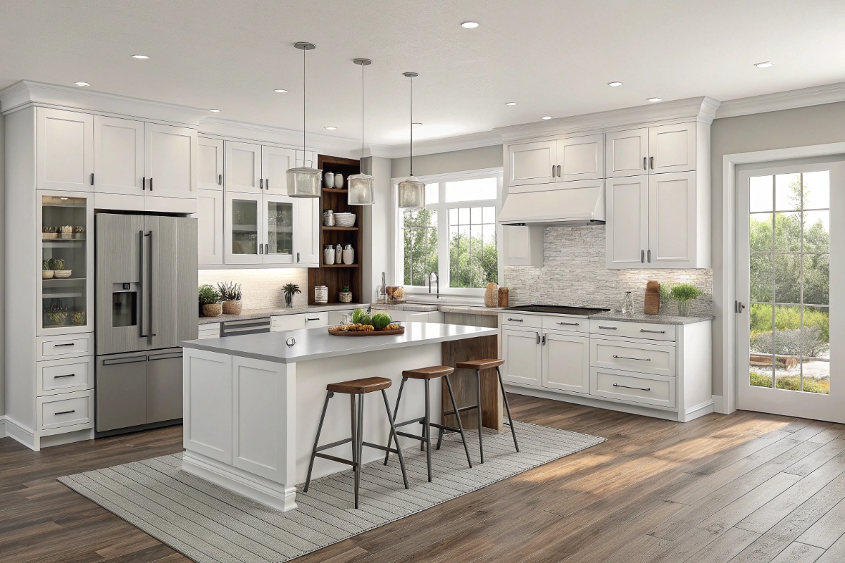 Lighting also plays a major role. Under-cabinet lights, ceiling lights, and task lights brighten the space and help in safe, comfortable cooking. Good lighting brings warmth to the kitchen and enhances the beauty of the cabinets and walls.
