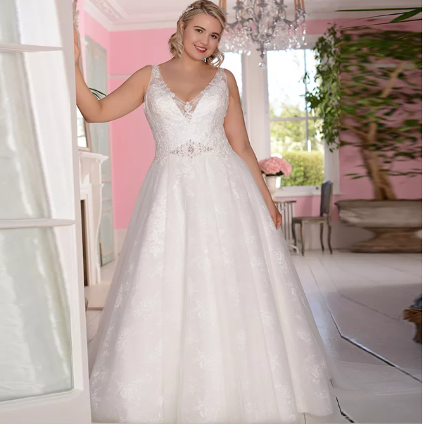 Curvy or plus-size brides shine in structured dresses with supportive bodices